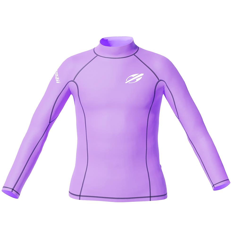 Material 50+ UV protection: tecido de alta qualidade com elastano, garantindo ao atleta alta flexibilidade e desempenho, bloqueia até 98% dos raios uv de acordo com as normas da arpansa, entidade australiana que é referência mundial na mensuração de fpu dos tecidos. | Tecnologia: modelagem anatômica Mormaii. | Composição: Camiseta roxa: 85% poliamida 15% elastano / Camiseta estampada: 84% poliéster 16% elastano.