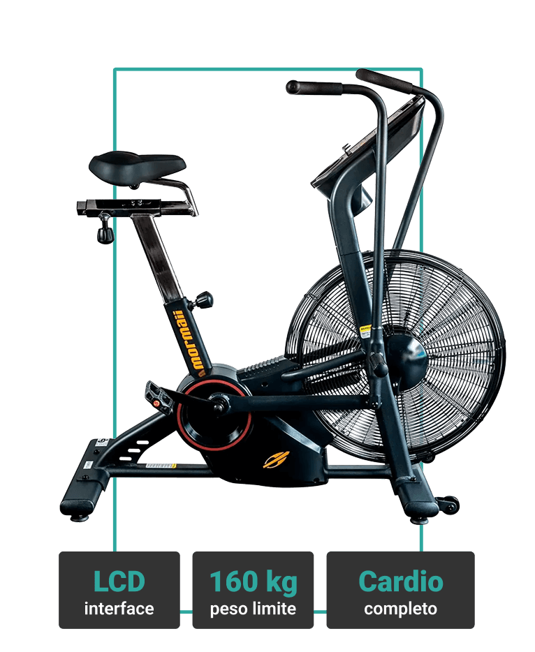 A Air Bike Mormaii se adapta à sua intensidade: quanto mais força você aplica, maior a resistência, oferecendo treinos suaves ou desafiadores.