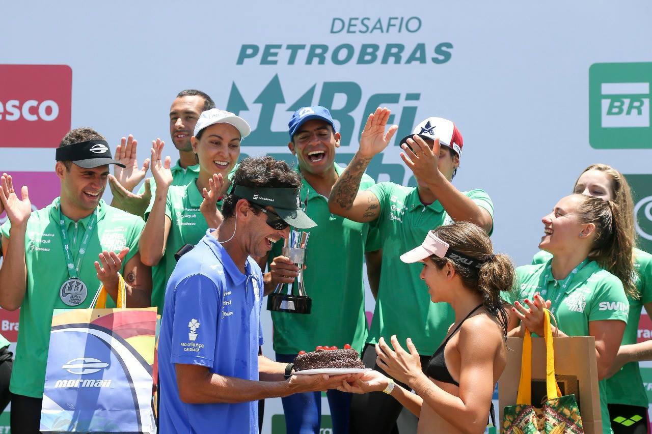 Na última competição da carreira de Poliana Okimoto, única nadadora do país a ter uma medalha olímpica, a equipe brasileira venceu o Desafio Elite Rei e Rainha do Mar, levantando a galera na areia.